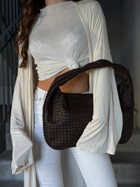 Meet the Vovia Woven Oversized shoulder bag - The woven texture adds a touch of sophistication to the classic shoulder design, making it a versatile and stylish accessory. Crafted from high-quality vegan leather, this bag is not only fashionable but also a cruelty-free choice. The zipper closure ensures the security of your essentials, combining practicality with a chic aesthetic. Choose ethical elegance with our vegan shoulder bag—a perfect blend of everyday functionality and timeless fashion.