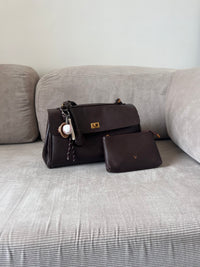 The Ciara Vintage Pouch is that little extra you didn’t know you needed. Designed to fit perfectly inside all our Ciara bags. It keeps your small stuff in check, think keys, lip balm, earbuds, cards. made from the same soft vegan leather you already love, with a smooth finish and subtle gold ‘v’ detail that gives quiet luxe vibes.
